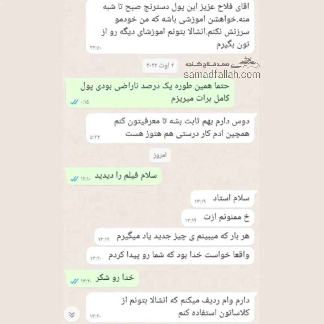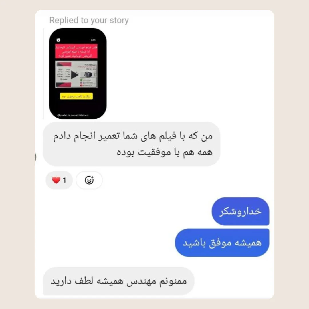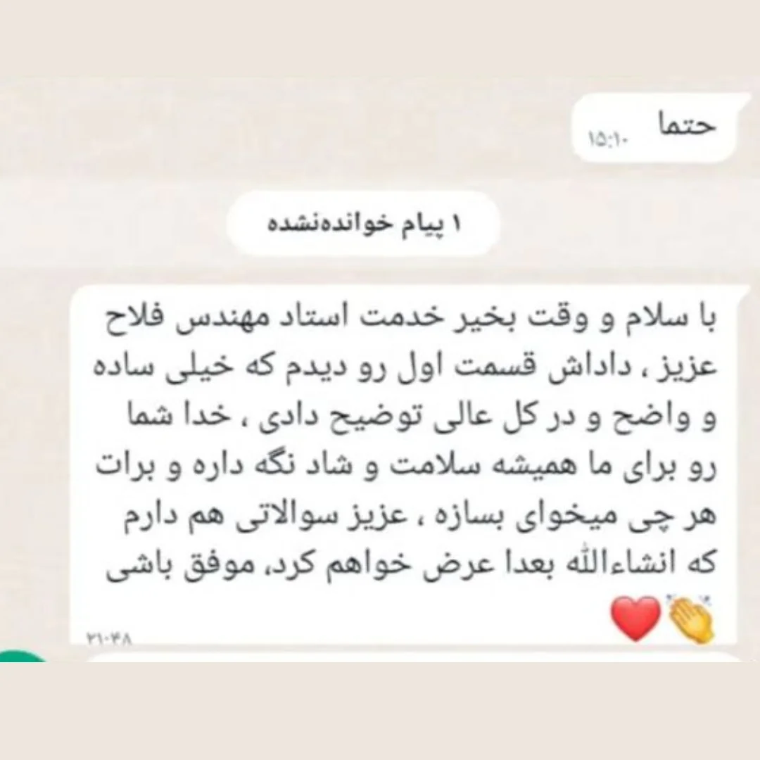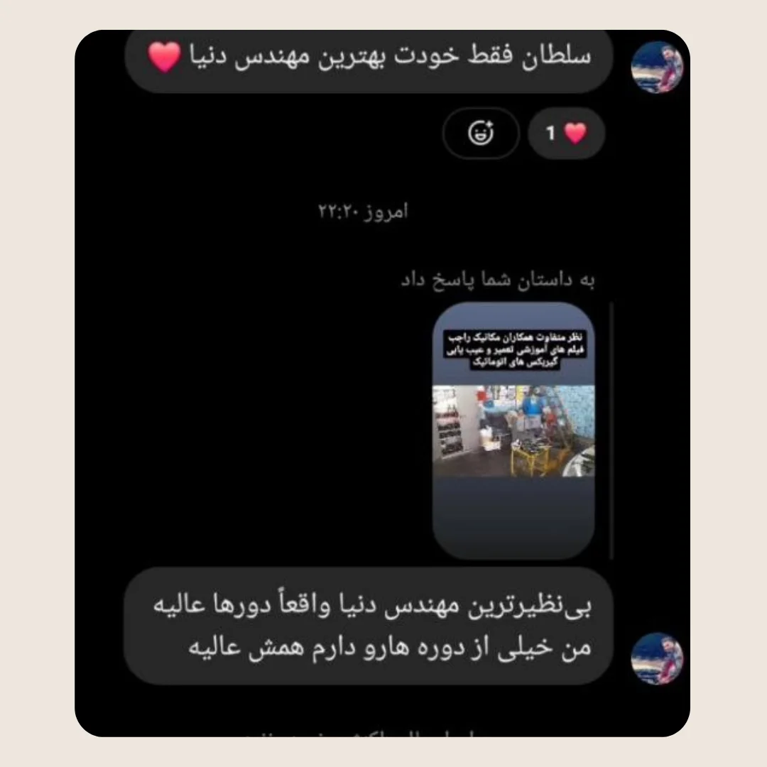 من واقعاً سختگیرم و قبل از خرید کلی تحقیق کردم. هیچ جایی مثل آموزشهای مهندس صمد فلاح اینقدر محتوای واقعی و کاربردی نداشت. بیشتر جاها فقط یه گیربکس واقعی نشون میدادن و بقیش فیلمهای ساده و ماکت بود. ولی دیدن آموزشهای ویدئویی مهندس فلاح بهاندازه ۳۰ سال سابقه کاری بهتون اطلاعات ارزشمند اضافه میکنه؛ ارزشش واقعاً قابل سنجش نیست. واقعاً از این کیفیت عالی ممنونم تو این بازار همه بدخواه همن و اطلاعات واقعی رو عمیق نمیدن بهت ولی شما واقعا با انصافید