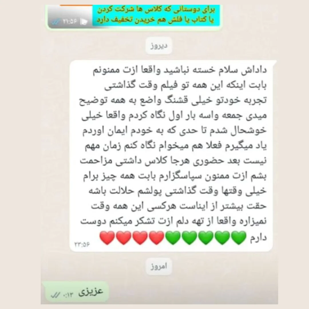 اینجوری تجربه هاتو منتقل میکنی واقعا عالی و بی نقص بود نکات طلایی داشت من دوره هم رفته بودم کلی هم خرج کرده بودم ولی اصلا متوجه چیزی نشدم